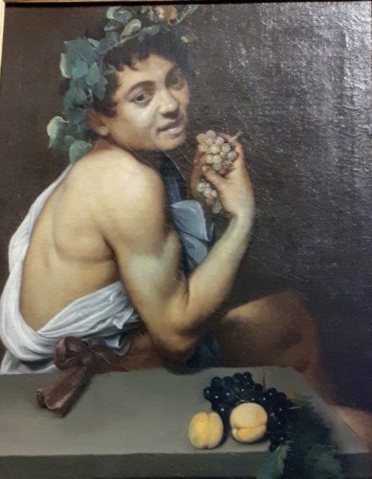 If you don’t have time to do all three days of my Caravaggio Tour, whatever you do, don’t skip this part of it. It’s magnificent. You’ll need several hours to do justice to the collections: on the ground floor alone, there are no less than six works by Caravaggio (deep breath): Boy with a Basket of Fruit, Self-Portrait as Bacchus (below right), Madonna dei Palafrenieri, St Jerome Writing (top of the page), David with the Head of Goliath and St John the Baptist.