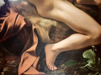 To kick off the last day of our Caravaggio trip to Rome, we’ll visit the Palazzo Barberini, one of the Galleria Nazionale d’Arte Antica’s two sites – the other being Palazzo Corsini, which we visited on Day 1. At the Palazzo Barberini you can see the stark, haunting St Francis in Meditation, the wistful Narcissus (right) and the compellingly gory Judith Slaying Holofernes (above). This is one of my favourites: note the look of squeamish distaste on the beautiful face of Judith, modelled by Fillide Melandroni, courtesan and Caravaggio muse, as she draws the blade of the sword across Holofernes’ neck, and contrast it with another famous treatment of the same Biblical subject by Artemisia Gentileschi (at the Museo Capodimonte in Naples: I’ll do a separate Caravaggio pilgrimage to Naples another time – watch this space). In Gentileschi’s painting, the protagonist seems more ruthless and dispassionate, which is interesting and revealing in the light of the painter’s life. Gentileschi, a rape survivor, became something of a #MeToo trailblazer and early feminist icon when she successfully brought charges against her attacker, her mentor Agostino Tassi, in 1612.
